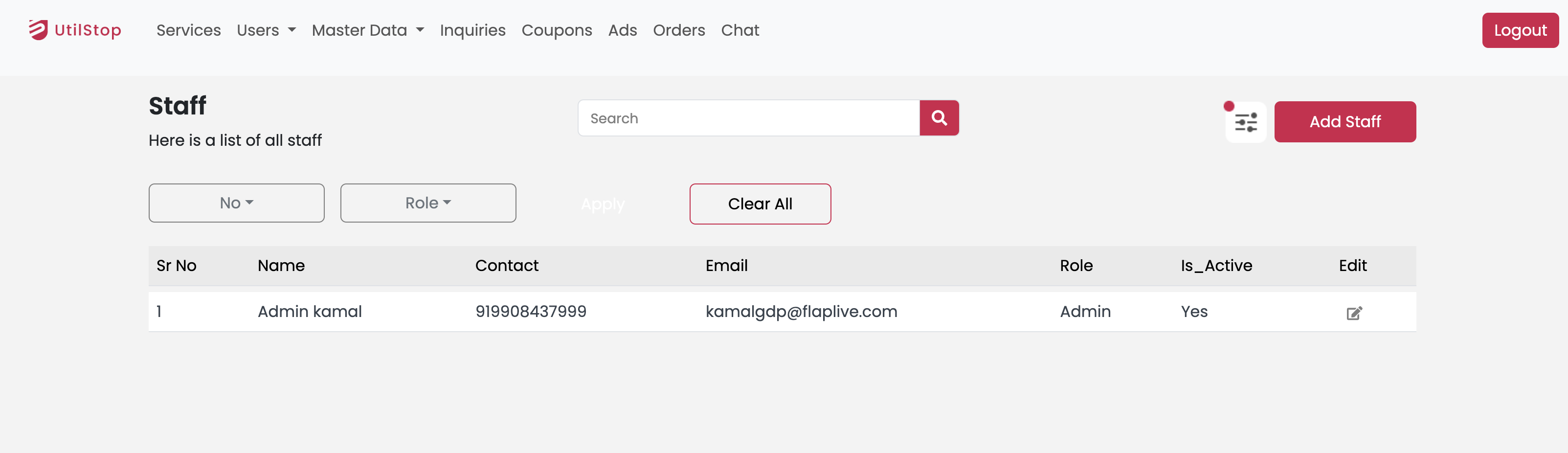 Staff - Is active filter is not filtering when user selects Is_active --> No